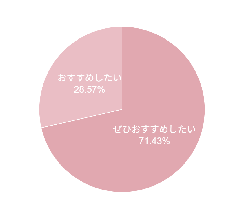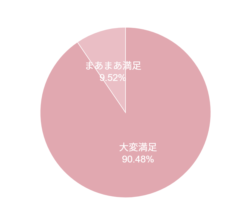 アンケートは満足度、おすすめ度とも100%! 満足度は「大変満足」が90%超と、とてもうれしい結果となりました!